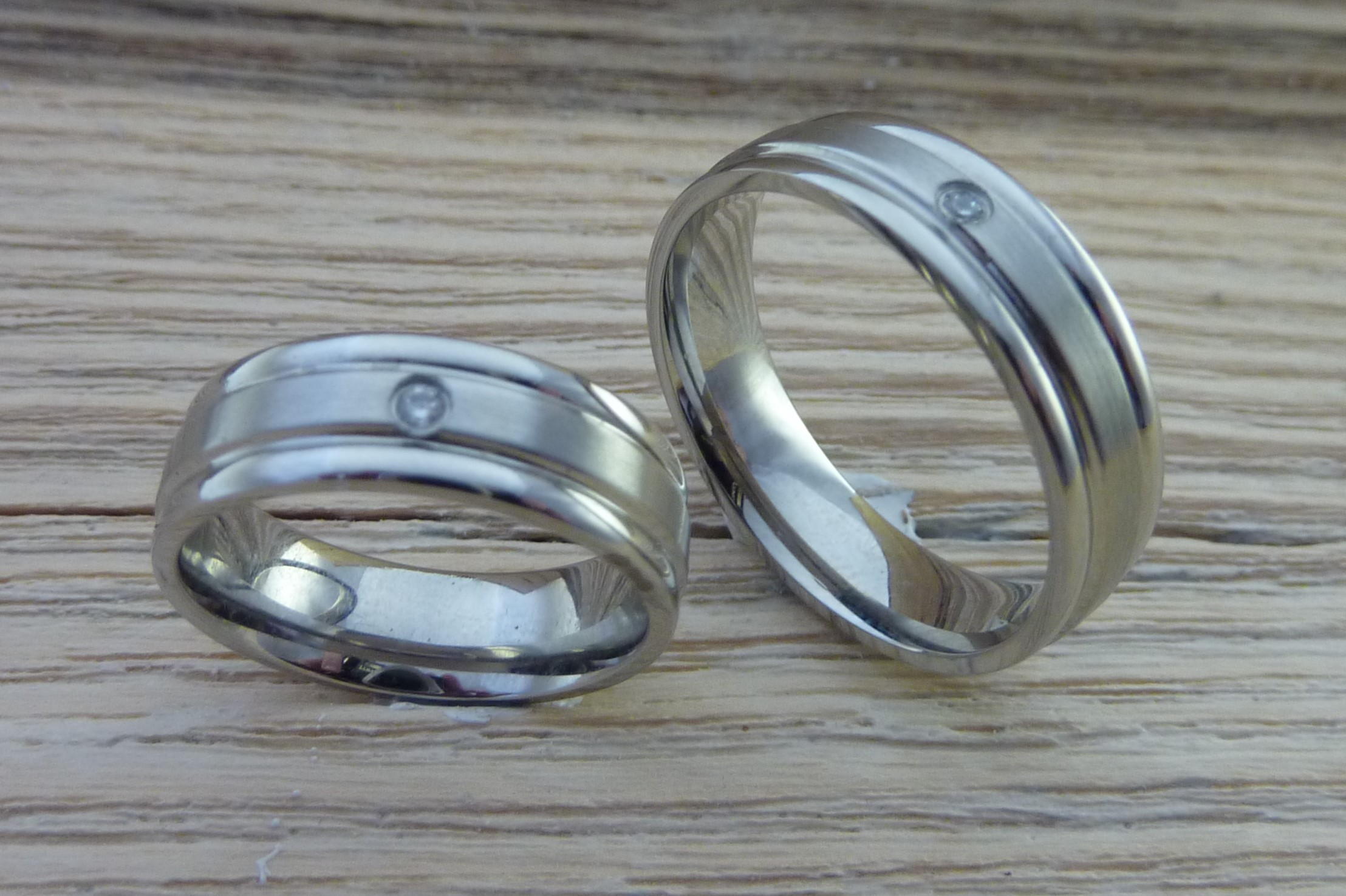 Snubní prsteny v kombinaci lesk/mat. Prsteny jsou zdobeny jedním kamínkem.